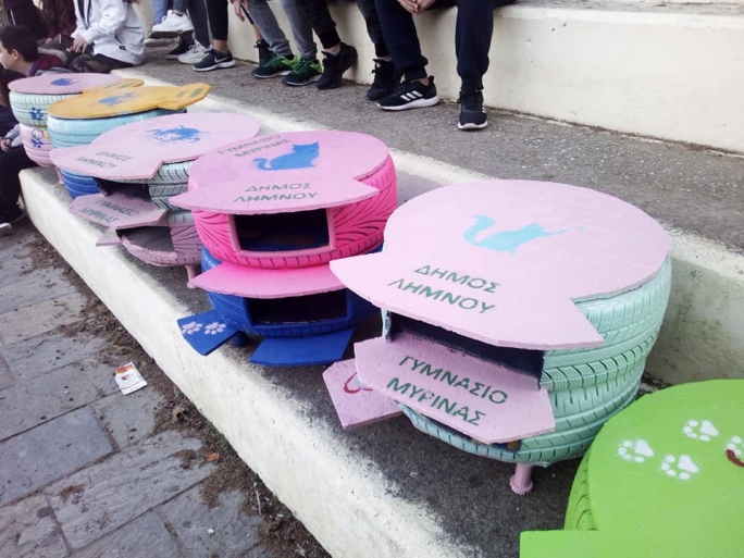 Μαθητές του Γυμνασίου Μύρινας Λήμνου έφτιαξαν σπιτάκια από ελαστικά για τις αδέσποτες γάτες by Newsroom 19.01.2020 20:16 written by Newsroom
