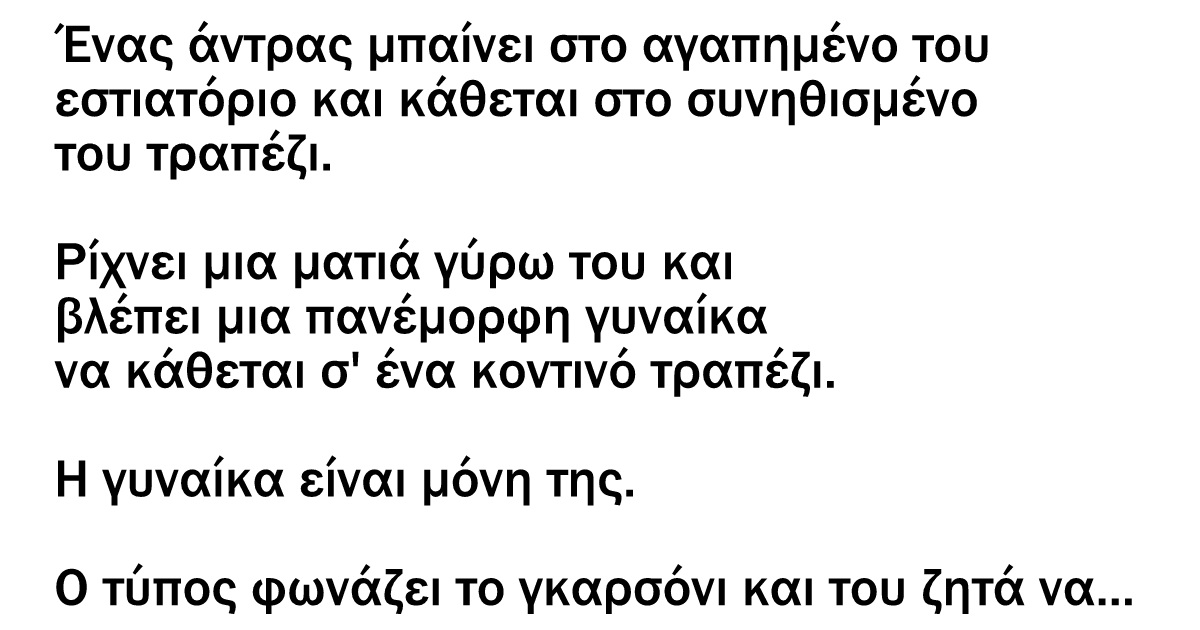 Κάποιος μπαίνει στο αγαπημένο του εστιατόριο και κάθεται στο συνηθισμένο του τραπέζι by Newsroom 04.10.2019 16:14 written by Newsroom