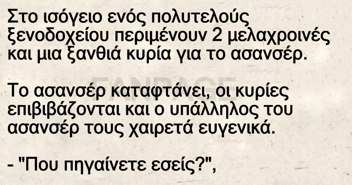 Στο ισόγειο ενός πολυτελούς ξενοδοχείου περιμένουν 2 μελαχροινές και μια ξανθιά κυρία για το ασανσέρ by Newsroom 02.03.2020 21:46 written by Newsroom