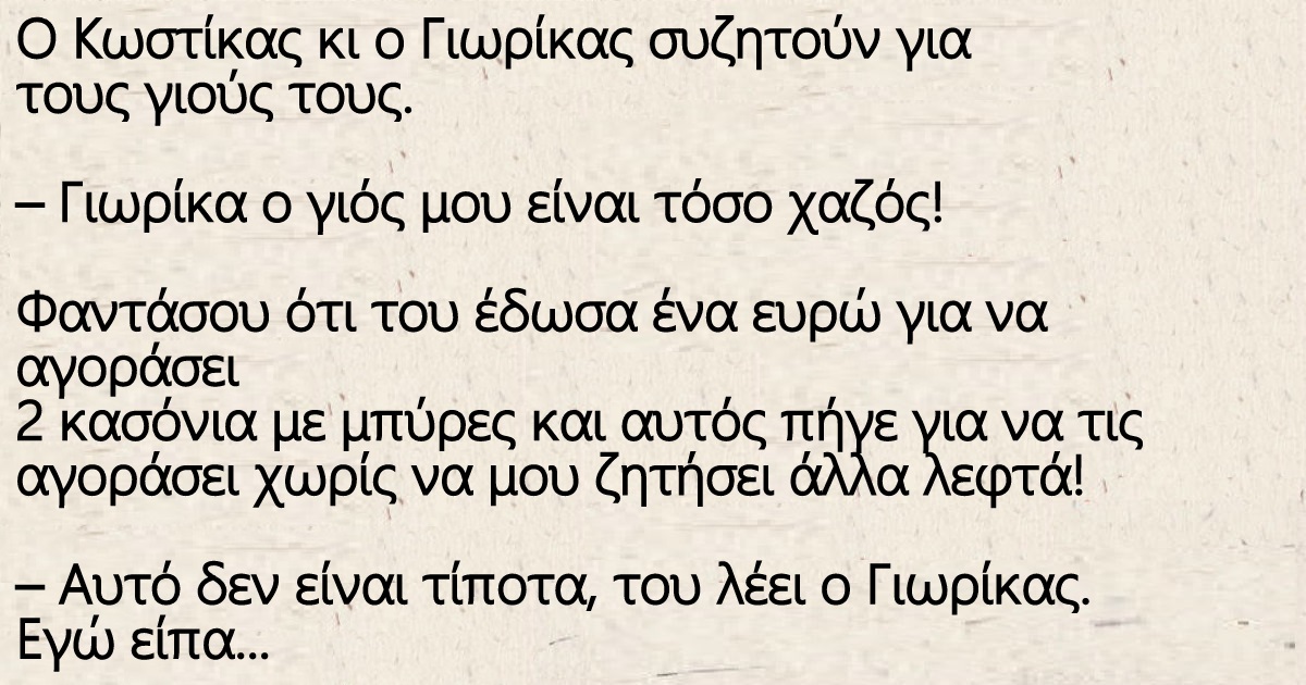 Ο Κωστίκας κι ο Γιωρίκας συζητούν για τους γιούς τους by Newsroom 17.11.2019 21:41 written by Newsroom
