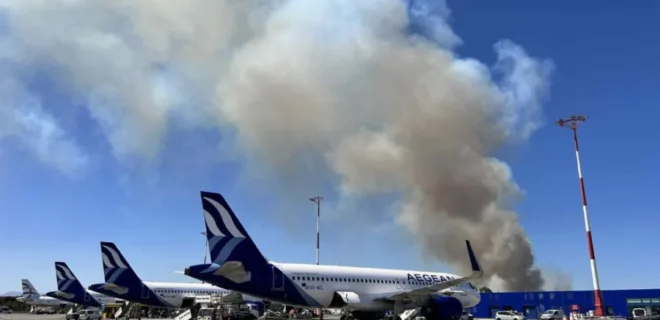 Ο καπνός από τη φωτιά είναι πυκνός και όπως φαίνεται και έχει καλύψει το εκπτωτικό χωριό στα Σπάτα.