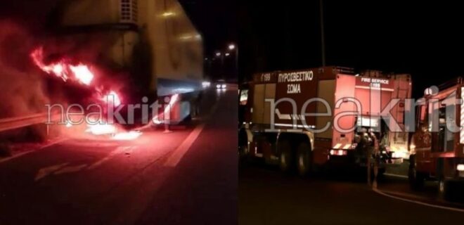 Σύμφωνα με το neakriti.gr, η φωτιά εκδηλώθηκε στο ψυγείο του φορτηγού, το οποίο μετέφερε κηπευτικά και είχε προορισμό το λιμάνι, ενώ ο οδηγός αντέδρασε άμεσα: αποσύνδεσε τον τράκτορα και τον απομάκρυνε πριν προλάβουν οι φλόγες να επεκταθούν, αποτρέποντας έτσι μια πολύ πιο σοβαρή εξέλιξη.