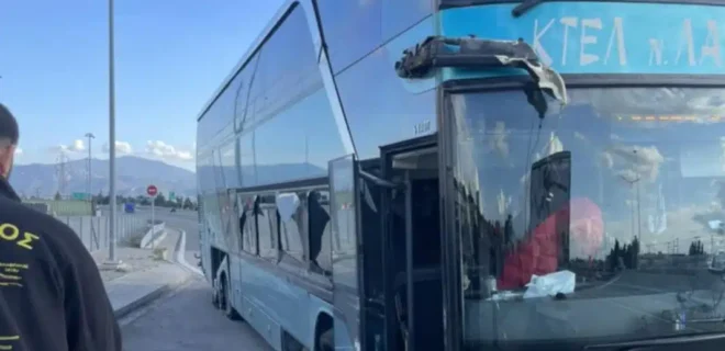 Συγκεκριμένα, σύμφωνα με το onlarissa.gr, λίγα χιλιόμετρα έξω από την Αθήνα λάστιχο του λεωφορείου έσκασε με αποτέλεσμα το όχημα να πέσει πάνω στις μπάρες της Εθνικής Οδού.