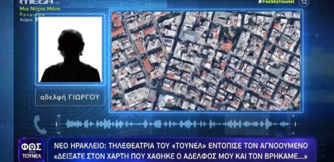Έξι μήνες μετά την εξαφάνιση ενός νέου άνδρα, η αγωνία της οικογένειάς του έλαβε τέλος με τον καλύτερο δυνατό τρόπο. Ο άνδρας βρέθηκε σώος στην περιοχή του Νέου Ηρακλείου Αττικής, χάρη στην κινητοποίηση της εκπομπής «Φως στο Τούνελ» και των τηλεθεατών της.