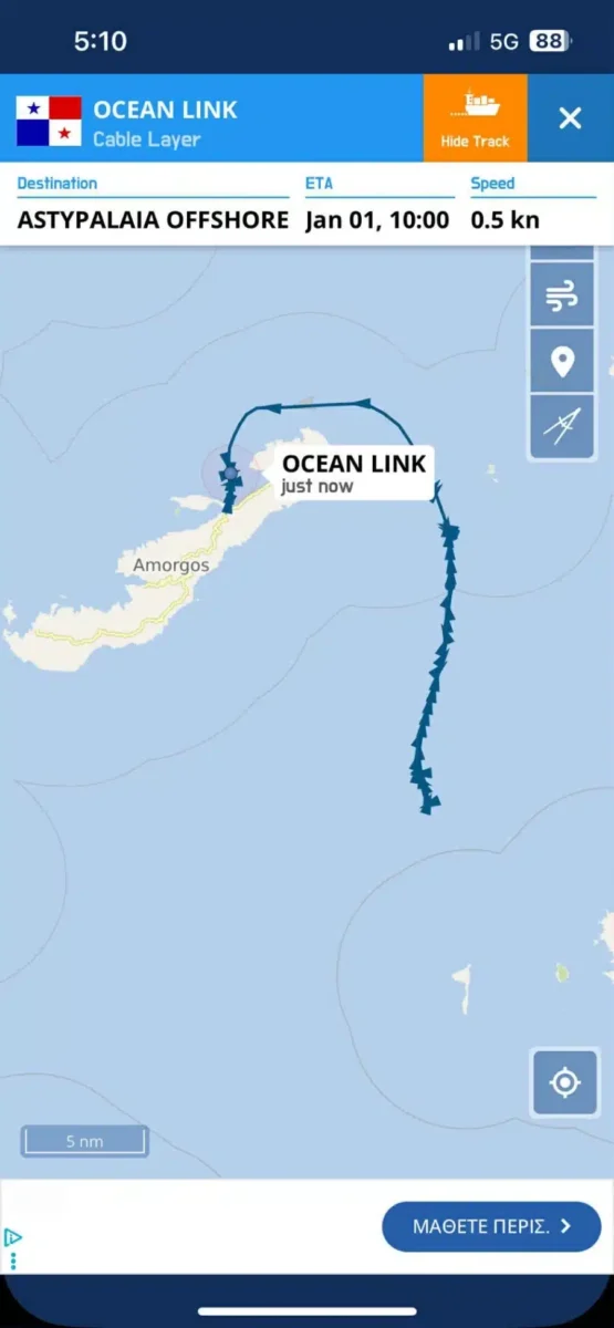 Το «Ocean Link» αυτή την ώρα καταπλέει στην Αμοργό και αναμένεται να συνεχίσει τις εργασίες πόντισης οπτικής ίνας στα νησιά σύμφωνα με τον προγραμματισμό.