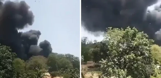 Οι πρώτες εικόνες από το περιστατικό δείχνουν συντρίμμια να καίγονται, και πυκνό μαύρο καπνό να υψώνεται στον ουρανό κοντά στο αεροδρόμιο.