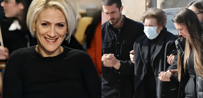 Η μητέρα της ηθοποιού, Αγγελική έφτασε λίγο πριν τις 11 στην εκκλησία, υποβασταζόμενη από την άλλη κόρη της, Μαρία. Η ίδια συντετριμμένη δεν μπορεί ακόμη να πιστέψει ότι έχασε την κόρη της…