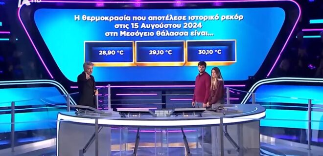 Στο επεισόδιο του «Money Drop» που παρακολουθήσαμε το βράδυ της Παρασκευής, 7 Φεβρουαρίου 2025, στον Alpha, το ζευγάρι των παικτών δεν κατάφερε να φύγει με κάποιο έπαθλο από το παιχνίδι καθώς έχασαν τα πάντα σε μια μόνο ερώτηση.