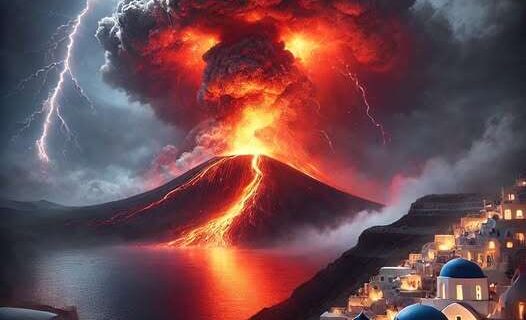 Το ηφαίστειο της Σαντορίνης είναι από τα μεγαλύτερα υποθαλάσσια ενεργά ηφαίστεια στο κόσμο, το οποίο διαθέτει τον μεγαλύτερο κρατήρα παγκοσμίωςΊσως το μόνο ηφαίστειο που η Καλντέρα του φθάνει μέχρι τη θάλασσα. Η μεγαλύτερή του έκρηξη συνέβη κατά την διάρκεια της Μινωική Εποχής του Χαλκού πριν από 3.600 χρόνια. Ολόκληρο το κέντρο του τότε κυκλικού νησιού βυθίστηκε στη θάλασσα κατά την διάρκεια της τρομερής ηφαιστειακής έκρηξης. Η έκρηξη προκάλεσε παλιρροιακό κύμα που κυριολεκτικά αφάνισε τον προηγμένο πολιτισμό της Μινωικής Κρήτης, 70 μίλια νότια της Σαντορίνης.Η τεράστια μάζα ελαφρόπετρας που εκτινάχθηκε κατά την ηφαιστειακή έκρηξη κάλυψε την επιφάνεια της θάλασσας σε μία ευρεία περιοχή που εν συνεχεία ξεβράστηκαν στις ακτές σε υψηλότερα επίπεδα από το τσουνάμι που προκλήθηκε από την έκρηξη. Στις περισσότερες από τις γύρω περιοχές του Αιγαίου, βρέθηκαν κομμάτια ελαφρόπετρας που φαίνεται πως είχαν παρασυρθεί στην επιφάνεια της θάλασσας. Ελαφρόπετρα επίσης βρέθηκε στις βόρειες ακτές της Κρήτης, στις ακτές της Ανάφης, της Λήμνου, της Πάρου, της Σαμοθράκης, της Κύπρου, ακόμη και του Ισραήλ. Οι ειδικοί έχουν ανακαλύψει ίχνη αυτής της έκρηξης ακόμη και μέχρι το Δέλτα του Νείλου στην Αίγυπτο.Αυτό που αποτελεί σήμερα τη Σαντορίνη είναι ένα μεγάλο μέρος του (τότε κυκλικού) νησιού σε σχήμα ημισελήνου, που βρίσκεται και η μεγαλύτερη καλντέρα της Γης.