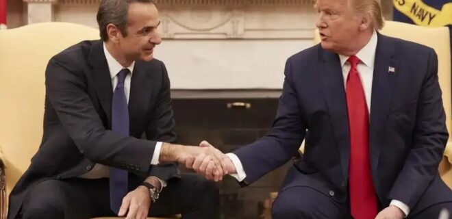 «Συμφωνώ. Τον γνωρίζω, είναι καλός άνθρωπος» είπε για τον κ. Μητσοτάκη ο Αμερικανός πρόεδρος.