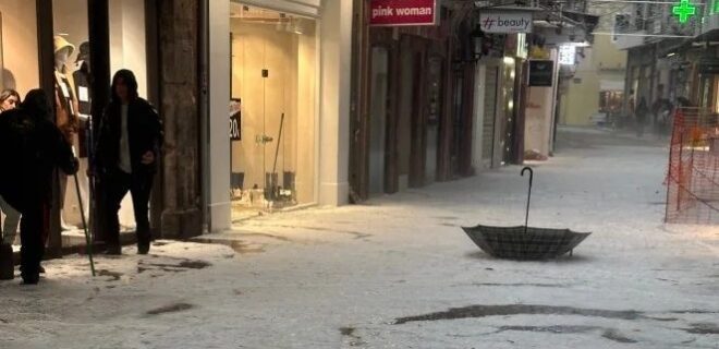 Αυτή την ώρα η Μυτιλήνη, δοκιμάζεται από μια πραγματικά σφοδρή και ασταμάτητη καταιγίδα, με βροχή που πέφτει σαν καταρράκτης και χαλάζι που χτυπάει αδυσώπητα.