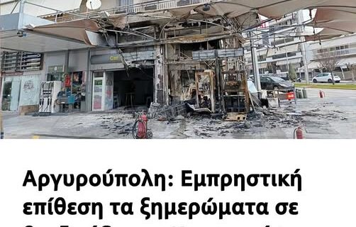 Οι κάτοικοι των διαμερισμάτων πάνω από το πρατήριο απομακρύνθηκαν χωρίς να υπάρξουν τραυματισμοί – Καταστράφηκε ολοσχερώς το βενζινάδικο.Εμπρηστική επίθεση από τέσσερις ένοπλους σημειώθηκε τα ξημερώματα σε πρατήριο υγρών καυσίμων στην Αργυρούπολη, προκαλώντας καταστροφές, αλλά και αναστάτωση, καθώς χρειάστηκε να εκκενωθούν τα διαμερίσματα πάνω από το βενζινάδικο, για να μην κινδυνεύσουν άνθρωποι.