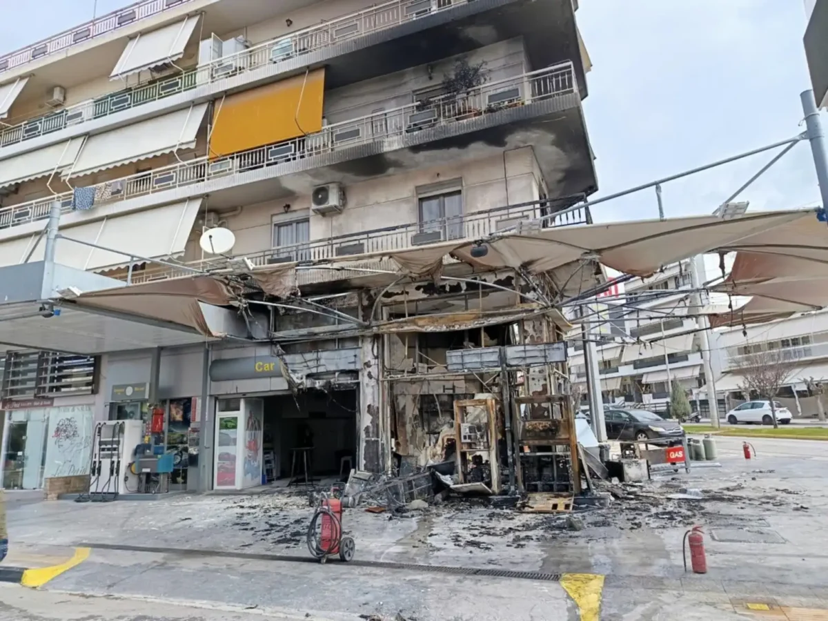 Οι κάτοικοι των διαμερισμάτων πάνω από το πρατήριο απομακρύνθηκαν χωρίς να υπάρξουν τραυματισμοί.