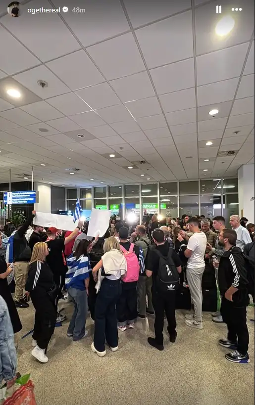 Συγγενείς και φίλοι, που την καλωσόρισαν στο αεροδρόμιο “Ελευθέριος Βενιζέλος”, της ετοίμασαν μια μεγαλειώδη υποδοχή και το κλίμα ήταν πανηγυρικό.