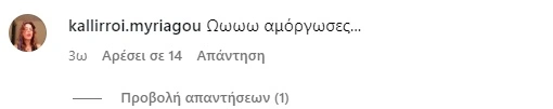 Οι followers της απευθείας έσπευσαν να την αποθεώσουν, όμως το πιο επικό σχόλιο έκανε η φίλη και κουμπάρα της -αφού της έχει βαφτίσει την κόρη- Καλλιρόη Μυριαγκού.