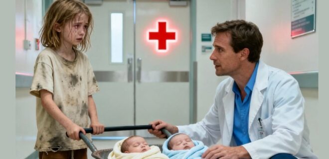 Μέσα, τυλιγμένα με φθαρμένες πετσέτες, βρίσκονταν δύο νεογέννητα με πρόσωπα χλωμά σαν κερί, αλλά ακόμη ζωντανά. Τα μαλλιά της κολλούσαν στα μάγουλά της, τα γόνατά της λύγιζαν σε κάθε βήμα και η φωνή της έσπασε όταν μίλησε.