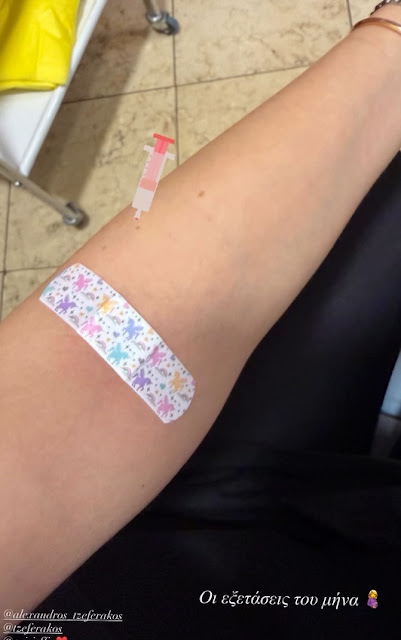 Η εγκυμονούσα παρουσιάστρια μάλιστα δεν παρέλειψε να μοιραστεί με το κοινό της ένα στιγμιότυπο από τη διάρκεια της αιμοληψίας της, ενημερώνοντάς το σε σχέση με τον μηνιαίο ιατρικό της έλεγχο.