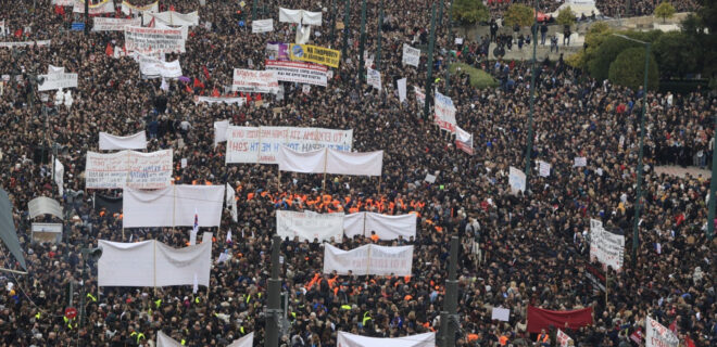Ένταση υπήρξε για μερικά λεπτά στο Σύνταγμα και τη σπουδαία συγκέντρωση για την τραγωδία των Τεμπών, με μια ομάδα κουκουλοφόρων να επιχειρεί να την αμαυρώσει.