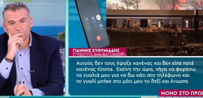Ο Γιάννης Ευθυμιάδης, επιβάτης του έκτου βαγονιού στο μοιραίο τρένο στα Τέμπη, μίλησε στην εκπομπή “Πρωινό”, σήμερα, Πέμπτη, το πρωί και περιέγραψε με λεπτομέρειες τη στιγμή της σύγκρουσης, ενώ έκανε και μια σημαντική αποκάλυψη για το βαγόνι δύο.