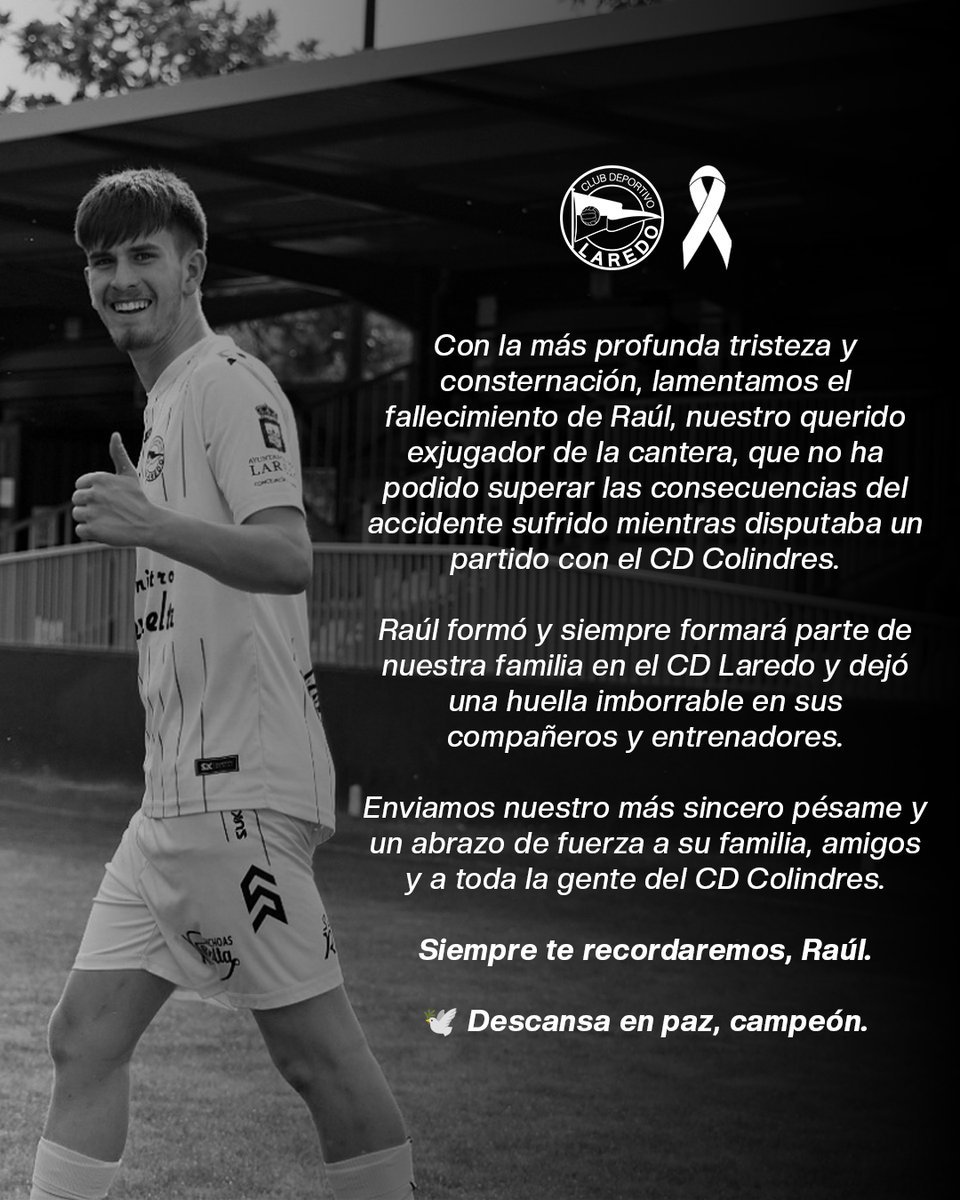 Ο Ραούλ Ραμίρεθ Οσόριο, τερματοφύλακας της πέμπτης κατηγορίας της Ισπανίας, πέθανε σε ηλικία 19 ετών μετά από σύγκρουση κατά τη διάρκεια αγώνα της ομάδας του, Κολίντρες, όπως ανακοίνωσε (29/9) η ποδοσφαιρική ομοσπονδία της Καντάβριας (RFCF).