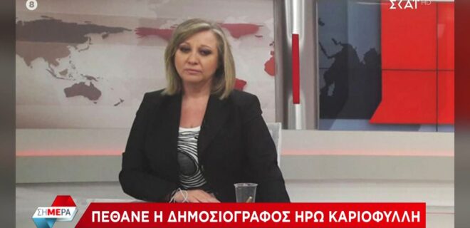 Την τελευταία της πνοή άφησε σήμερα το πρωί η δημοσιογράφος Ηρώ Καριοφύλλη, η οποία έδινε μάχη με τον καρκίνο.