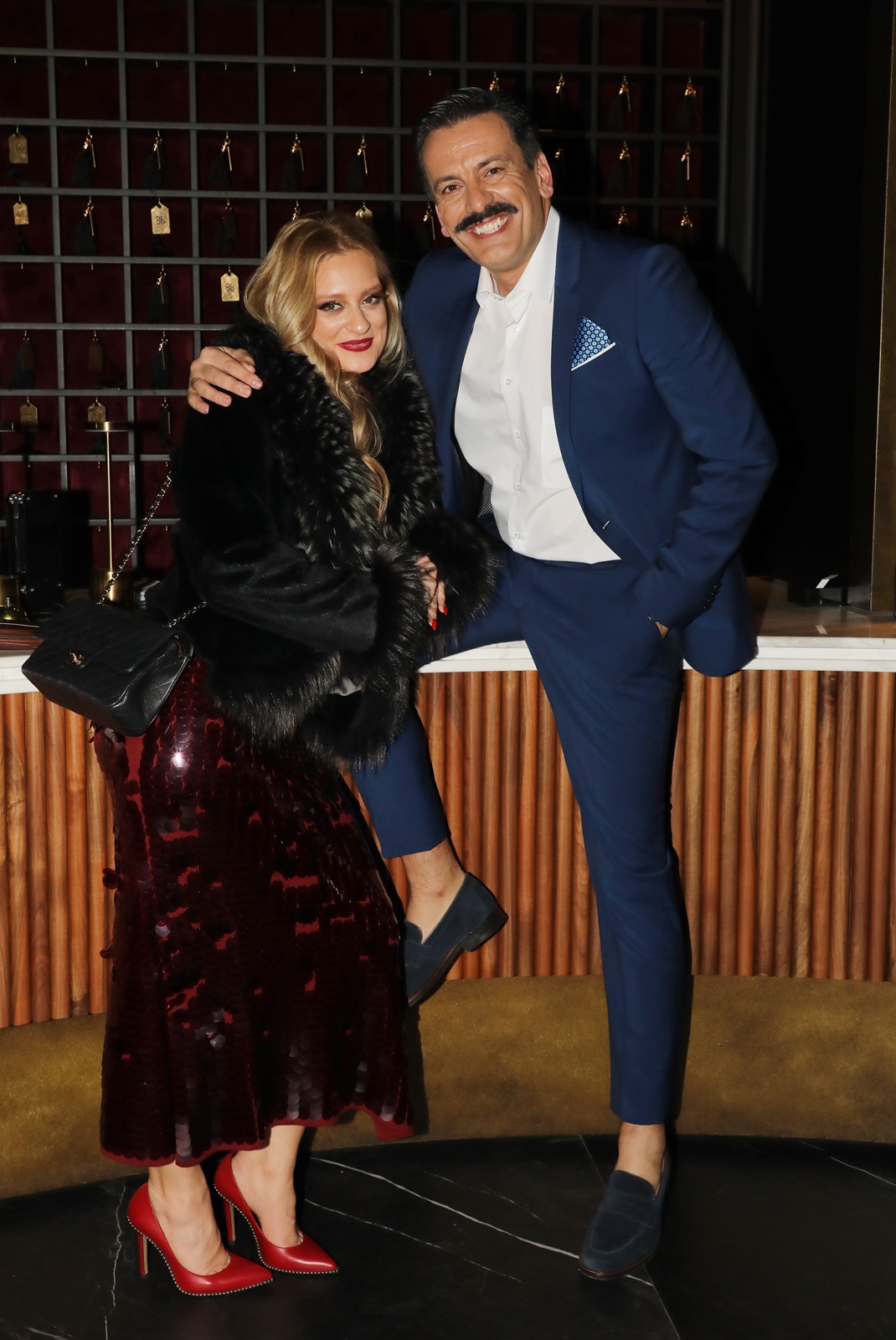 Για τη βραδινή τους έξοδο ο Θάνος Κιούσης επέλεξε ένα κομψό navy κοστούμι ενώ η αγαπημένη του επέλεξε ένα midi φόρεμα σε μπορντό χρώμα, όλο παγιέτα. Ολοκλήρωσε την εμφάνισή της με ένα μαύρο παλτό και κόκκινες γόβες.
