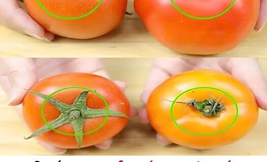 Μίσχος: Οι φυσικά ώριμες ντομάτες έχουν συνήθως μια ομοιόμορφη κόκκινη απόχρωση που εκτείνεται μέχρι το στέλεχος. Οι χημικά επεξεργασμένες ντομάτες έχουν συχνά ένα πρασινωπό ή ανοιχτόχρωμο κομμάτι γύρω από τον μίσχο επειδή η διαδικασία ωρίμανσης δεν είναι ομοιόμορφη.