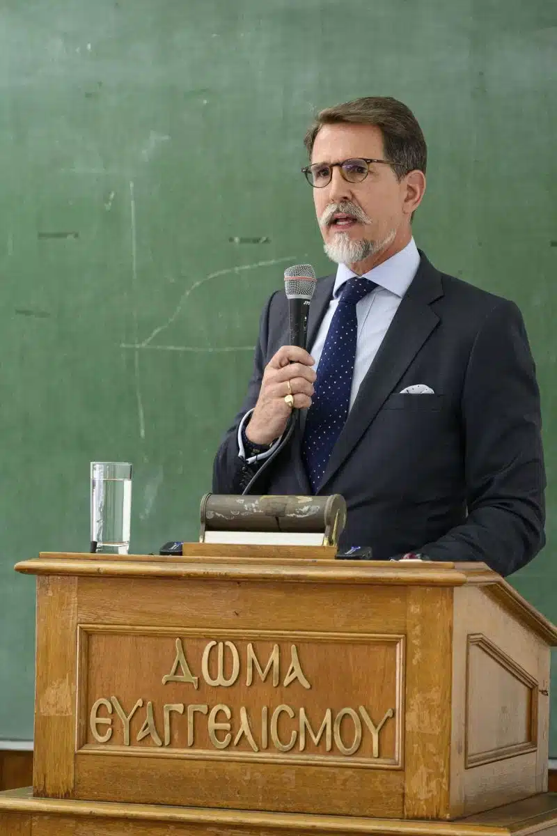 Ο πρόεδρος της Aurora κύριος Clemente Pinedo, η κυρία Ντίμη Σπανού, Παύλος Ντε Γκρες, Mr. Jeremy Downward, Νικόλαος Ντε Γκρες, Χρυσή Βαρδινογιάννη, Θεοδώρα Ντε Γκρες και Matthew Kumar. Στην μπροστινή σειρά: κυρία Μάχη Σπανού, τέως βασίλισσα Άννα-Μαρία.