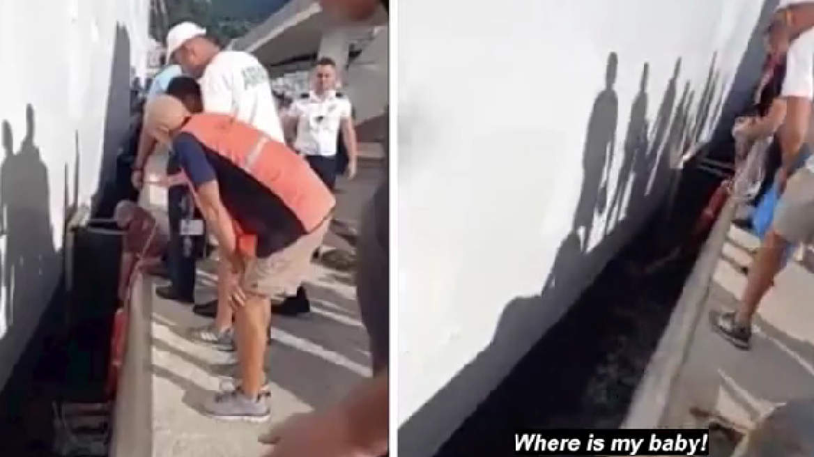 Όπως αναφέρει η Daily Mail, η μητέρα, εμφανώς πανικόβλητη, φωνάζει “πού είναι το παιδί μου;” την ώρα που διαπιστώνει πως το 8χρονο παιδί της έχει πέσει στο κενό ανάμεσα στο κρουαζιερόπλοιο και την αποβάθρα.