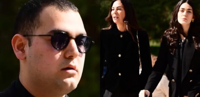 Σύμφωνα με πληροφορίες, επικηδείους θα εκφωνήσουν τα δύο του παιδιά, Χρήστος και Μάιρα, οι οποίοι έφτασαν λίγα λεπτά πριν τις 11:30 π.μ. στην εκκλησία μαζί με τη μητέρα τους Εύη Βατίδου.