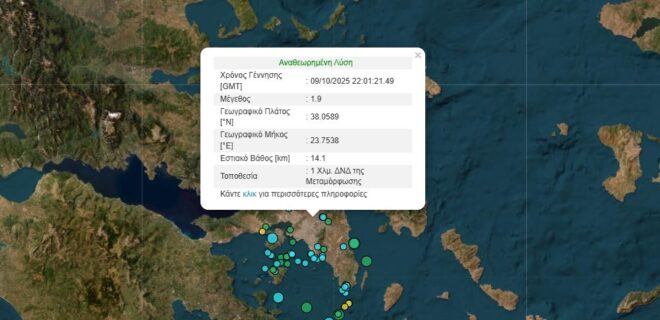 Σεισμός «χτύπησε» την Αθήνα – Τα Ρίχτερ και ο χάρτηςΜικρής έντασης αλλά αισθητός σεισμός σημειώθηκε λίγο μετά τη 1:00 τα ξημερώματα της Παρασκευής (10/10), προκαλώντας ανησυχία σε κατοίκους αρκετών περιοχών της Αθήνας που ένιωσαν ένα ελαφρύ ταρακούνημα.