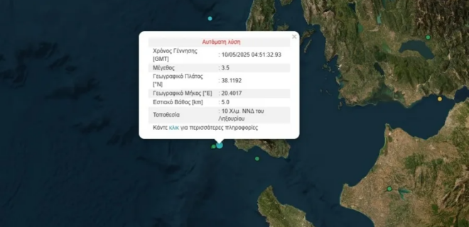 Πρόκειται για σεισμό της τάξεως των 3,5 βαθμών της κλίμακας Ρίχτερ, με εστιακό βάθος 5χλμ. Όλα συνέβησαν στις 6:51 το πρωί 10 χλμ ΝΝΔ του Ληξουρίου στην Κεφαλονιά.