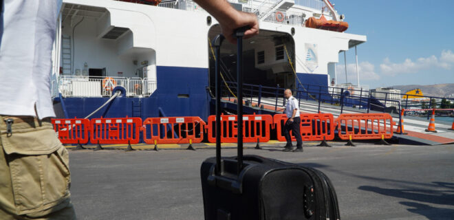 Οι επιβάτες αναμένουν στο λιμάνι άλλο πλοίο, προκειμένου να μεταφερθούν στον προορισμό τους.