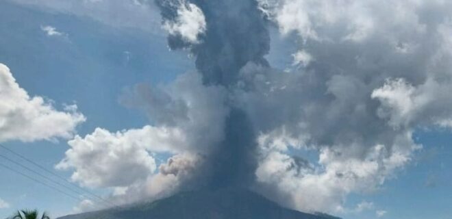 Mount Lewotobi Laki-Laki on Flores island erupted sending volcanic materials 10 kilometres (6.2 miles) above its 1,584-metre-high… pic.twitter.com/J5BAUvfgiV