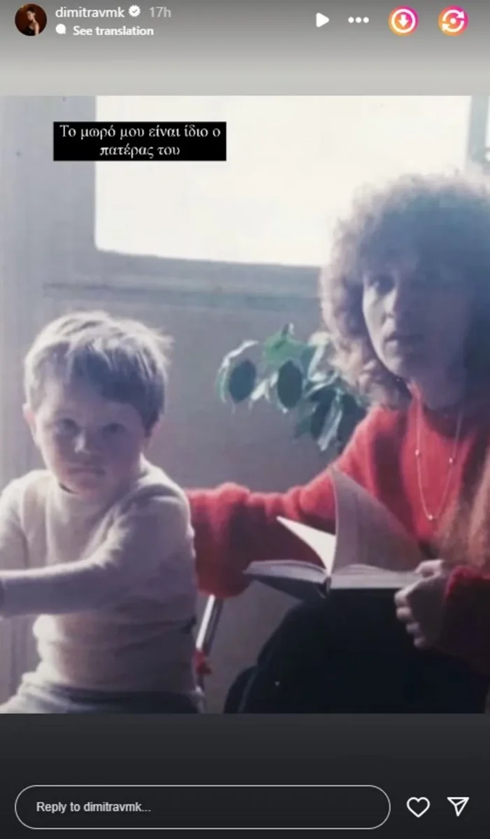 Η Δήμητρα Βαμβακούση δημοσίευσε σε instastory μία φωτογραφία του Ντάνου δίπλα στη μαμά του από τότε που ήταν παιδί και ανέφερε: «Το μωρό μου είναι ίδιος ο πατέρας του»