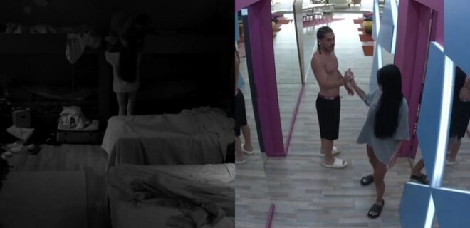 Όχι φυσικά μέσα στη μέρα, με τα φώτα αναμμένα και όλα τα μάτια πάνω τους. Πιο μουλωχτά, στο απόλυτο σκοτάδι του βραδιού, χωρίς αυτό να σημαίνει ότι δεν έγιναν αντιληπτοί τόσο από τις υπερσύγχρονες κάμερες όσο και από μάτια συμπαικτών που ακόμα δεν είχαν κοιμηθεί. Τα φιλιά μάλιστα ανταλλάχτηκαν στο πάνω κρεβάτι της κουκέτας ενώ η παίκτρια λίγο αργότερα, σε απόλυτη ησυχία επέστρεψε στο κρεβάτι της σαν να μη συνέβη τίποτα. Δυστυχώς όμως για εκείνη δεν μπόρεσε να κρατήσει κρυφή, αν τελικά το ήθελε, αυτήν την αγκαλιά και τα φιλιά.