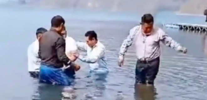 Στο βίντεο από την τελετή που έγινε στη λίμνη Ατιτλάν στη νοτιοδυτική Γουατεμάλα φαίνεται ο Μιγκέλ Σουτ να κρατάει έναν άνδρα που ετοιμαζόταν να βαπτιστεί.