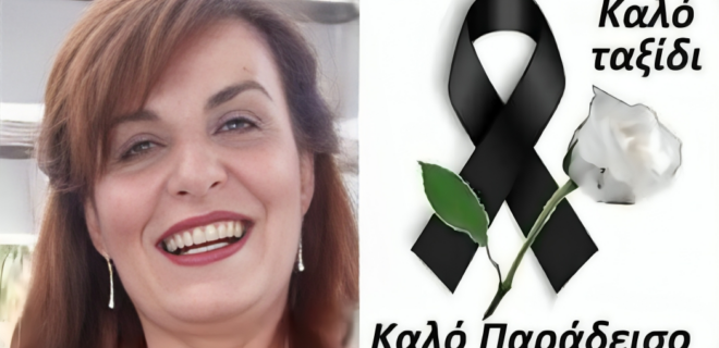 Σύμφωνα με πληροφορίες ένα ξαφνικό πρόβλημα υγείας ήταν η αφορμή να αφήσει τη Δευτέρα την τελευταία της πνοή, βυθίζοντας στο πένθος την οικογένεια της και τους πολυάριθμους φίλους της, οι οποίοι την αποχαιρετούν με συλλυπητήρια μηνύματα στο διαδίκτυο.