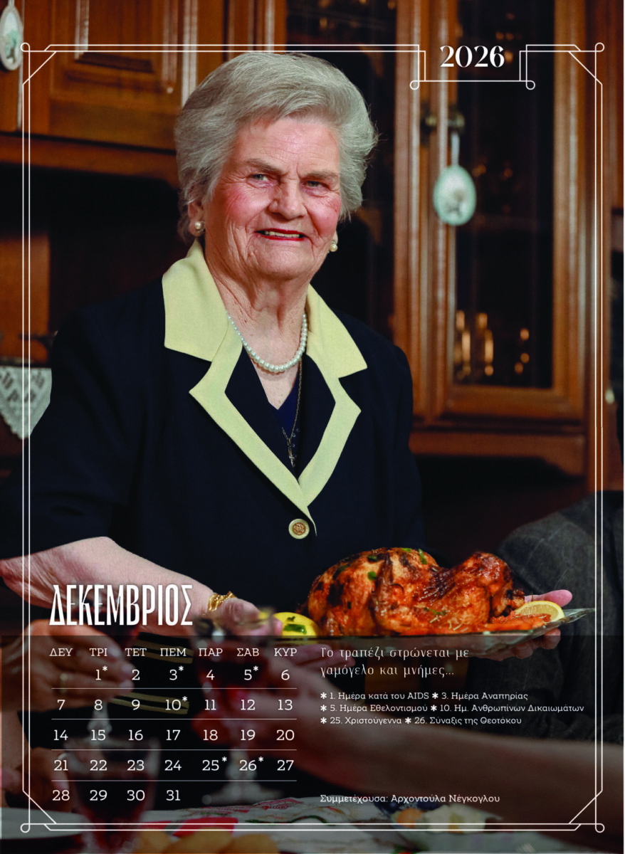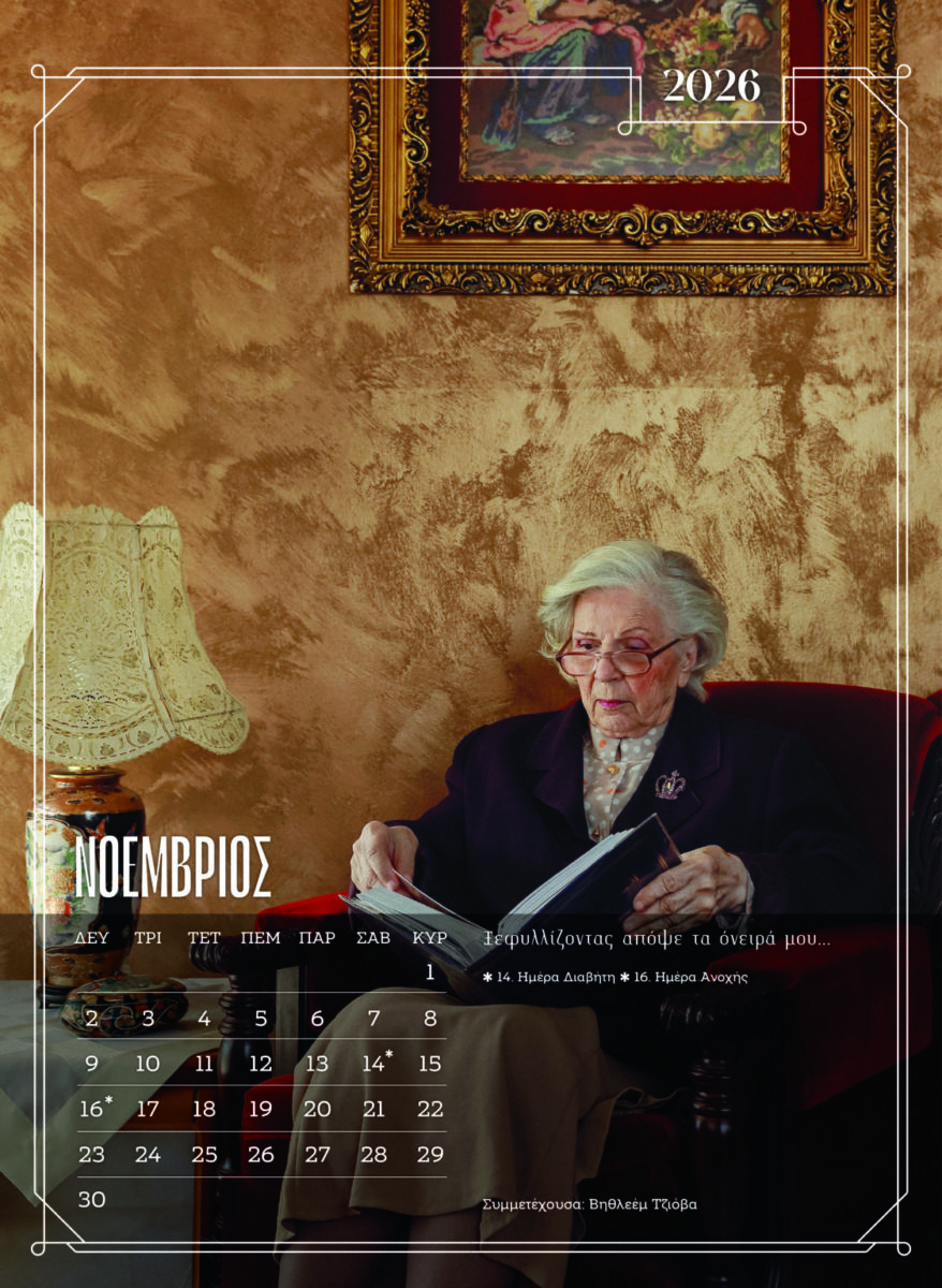 Ο Νοέμβριος ανήκει στη Βηθλεέμ Τζιόβα, που «ξεφυλλίζει τα όνειρά της» σαν να ξεφυλλίζει άλμπουμ αναμνήσεων. Και ο Δεκέμβριος κλείνει τη χρονιά με την Αρχοντούλα Νέγκογλου, εκεί όπου «το τραπέζι στρώνεται με χαμόγελο και μνήμες», προσκαλώντας μας σε μια γιορτή γεμάτη τρυφερότητα.