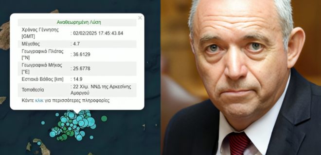 Αυτοψία πραγματοποιεί στη Σαντορίνη ο πρόεδρος του ΟΑΣΠ και καθηγητής Διαχείρισης Φυσικών Καταστροφών, Ευθύμης Λέκκας, λόγω της αυξημένης σεισμικής δραστηριότητας που καταγράφεται στην θαλάσσια περιοχή της Ανύδρου, μεταξύ Θήρας και Αμοργού.