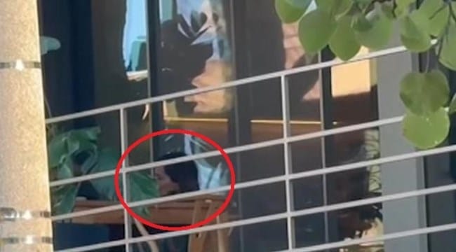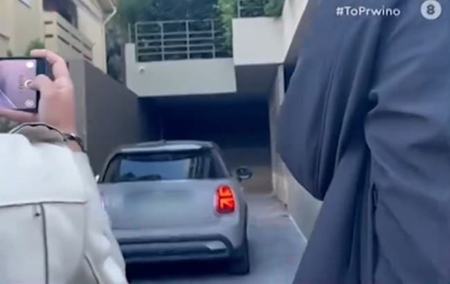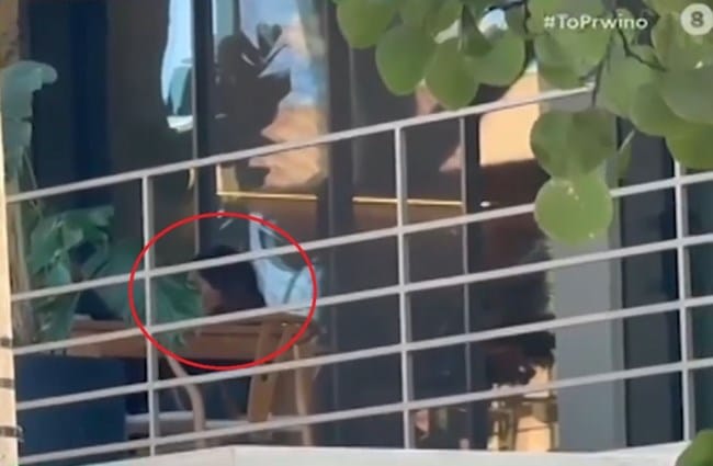 Στο βίντεο φαίνεται και η σύντροφός του, Δέσποινα Βανδή, η οποία καθόταν στο μπαλκόνι του σπιτιού τους, εμφανώς σκεπτική και στενοχωρημένη.