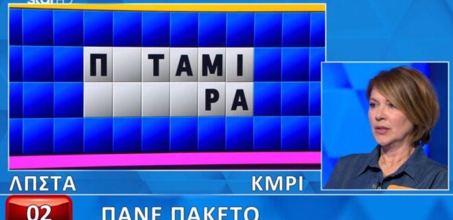 Με το που τοποθετούνται τα γράμματα, αρχίζει να αναρωτιέται ποια είναι η κατηγορία που έχει επιλέξει η παραγωγή του τηλεπαιχνιδιού του STAR. Δεν θυμόταν το «πάνε πακέτο». Βρήκε το ποτάμι, αλλά έχασε χρόνο και τη δεύτερη λέξη την πήρε το ποτάμι…