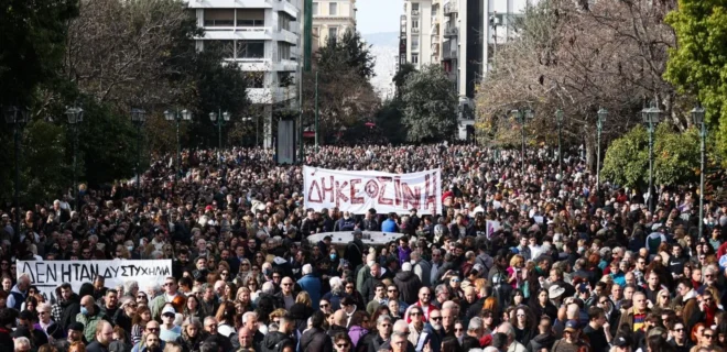 “Έτι δεόμεθα υπέρ μακαρίας μνήμης και αιωνίου αναπαύσεως των ψυχών πάντων των βιαίως κοιμηθέντων αδελφών ημών κατά το σιδηροδρομικόν δυστύχημα εις την περιοχήν των Τεμπών και υπέρ του συγχωρηθήναι αυτοίς παν πλημμέλημα εκούσιόν τε και ακούσιον.”