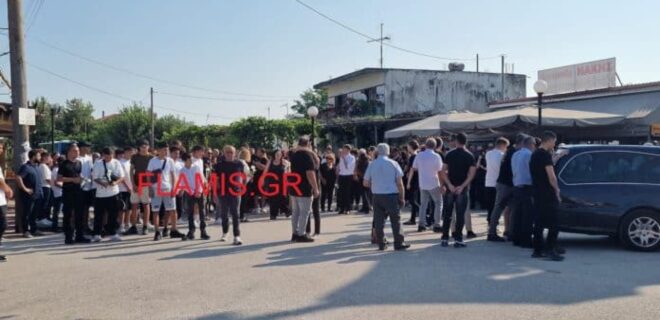 Με λουλούδια στα χέρια, φορώντας μαύρα και λευκά μπλουζάκια, δεκάδες άτομα αποχαιρετούν τον Σπύρο που με τον θάνατό του χάρισε ζωή σε άλλους ανθρώπους, μετά τη γενναία απόφαση των γονιών του να δωρίσουν τα όργανά του. Η σορός έφτασε στην εκκλησία συνοδεία πλήθους κόσμου ενώ τον Σπύρο αποχαιρετά και ο διευθυντής της ΜΕΘ Παίδων του νοσοκομείου στο Ρίο, Ανδρέας Ηλιάδης.