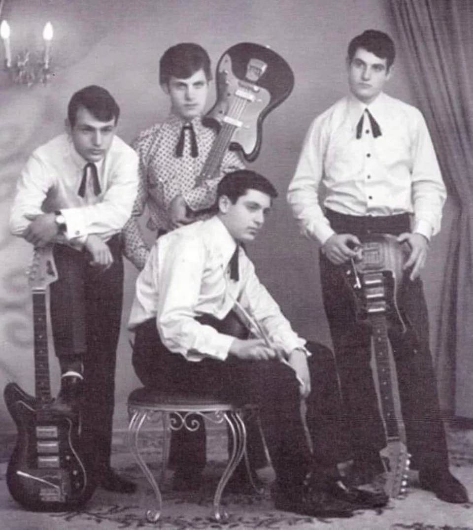 Στην εικόνα, ο νεαρός Παπακωνσταντίνου απεικονίζεται μαζί με τα υπόλοιπα μέλη του πρώτου του συγκροτήματος, επιβεβαιώνοντας τα πρώιμα καλλιτεχνικά του βήματα και προσφέροντας μια αυθεντική ματιά στο ξεκίνημα μιας σπουδαίας μουσικής διαδρομής.