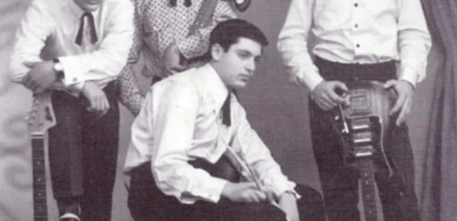 Στην εικόνα, ο νεαρός Παπακωνσταντίνου απεικονίζεται μαζί με τα υπόλοιπα μέλη του πρώτου του συγκροτήματος, επιβεβαιώνοντας τα πρώιμα καλλιτεχνικά του βήματα και προσφέροντας μια αυθεντική ματιά στο ξεκίνημα μιας σπουδαίας μουσικής διαδρομής.