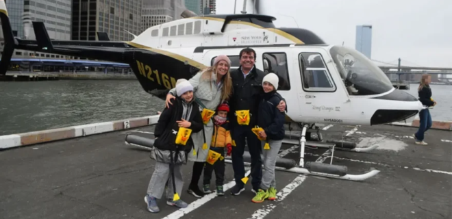 Στις φωτογραφίες που δημοσιεύθηκαν στην ιστοσελίδα New York Helicopter Tours, φαίνονται τα πέντε μέλη της οικογένειας να χαμογελούν μπροστά από το ελικόπτερο Bell 206L-4 LongRanger IV και να δένονται μέσα στο αεροσκάφος.