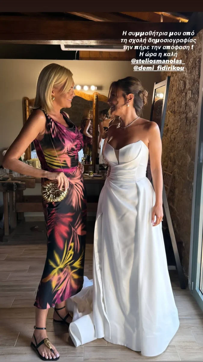 Ανάμεσά τους η Σάσα Σταμάτη, η οποία αποκάλυψε πως ήταν συμμαθήτριες και ανέβασε πλούσιο υλικό στον δικό της προφίλ στο Instagram, ακόμη και από την προετοιμασία της νύφης. Αξίζει να σημειωθεί πως κουμπάρα των νεόνυμφων είναι η Σοφία Τουντούρη!