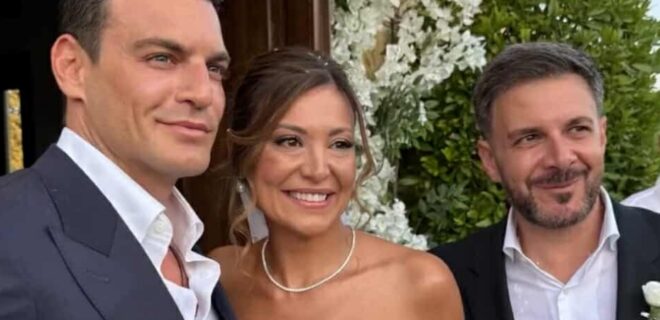 Ο Δημήτρης Φιντιρίκος πόζαρε δίπλα στο ζευγάρι, γεμάτος περηφάνεια και χαρά για την αδερφή του και απέναντί τους στέκονταν όλοι οι καλεσμένοι, ανάμεσα στους οποίους υπήρχαν πολλά λαμπερά ονόματα της εγχώριας showbiz.