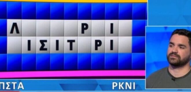 Τροχός της Τύχης : Σε αυτόν τον τελικό το κλειδί ήταν ο παίκτης να πει το σωστό φωνήεν. Αυτό το φωνήεν ήταν το «ι». Και που το είπε ο παίκτης, δεν βρήκε τη λύση κάνοντας… έξαλλο τον Πέτρο Πολυχρονίδη.